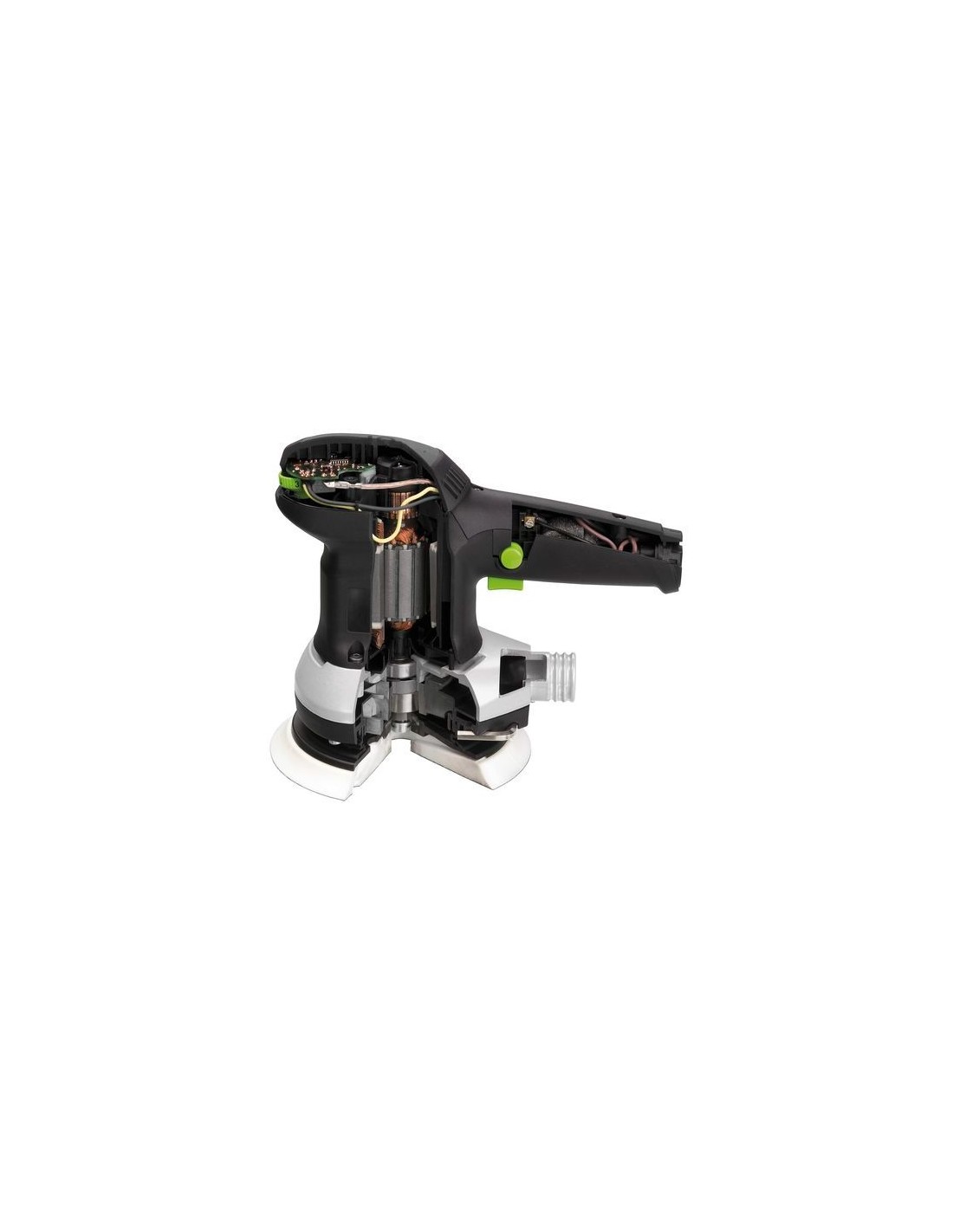 La potente aspirazione della polvere e l'attacco del tubo flessibile a tenuta assoluta garantiscono un lavoro praticamente senza polvere. Visuale libera per una levigatura ineccepibile e massima tutela della salute.